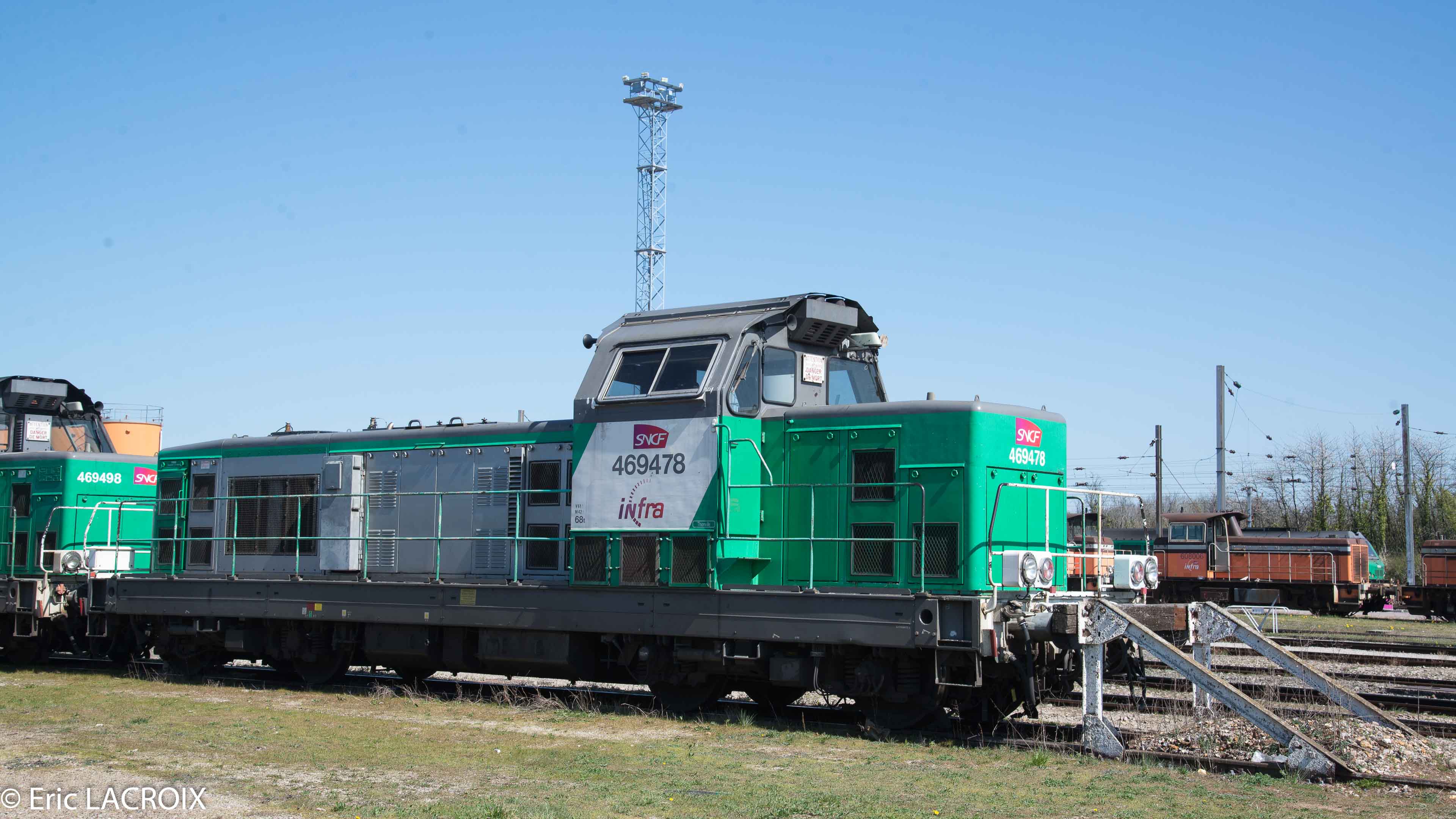 Voici la 469478 avec le logo Infra en livrée Fret (ex 66478 mise en service le 23-09-1970)