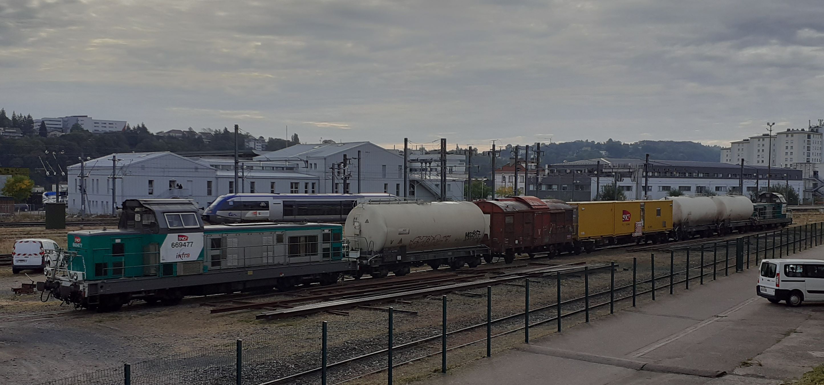 De passage à Epinal en train desherbeur et accompagné de la 69485. Octobre 2023.