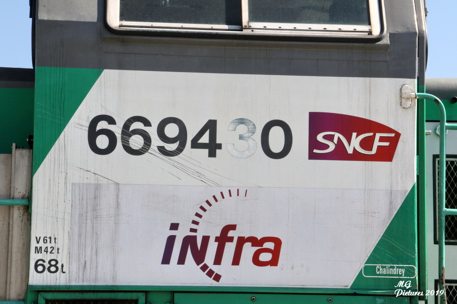 Voici la 669430 Infra avec le logo en livrée Fret (ex 66430 mise en service le 03-04-1969) en queue de TM passage par la gare de SPDC pour