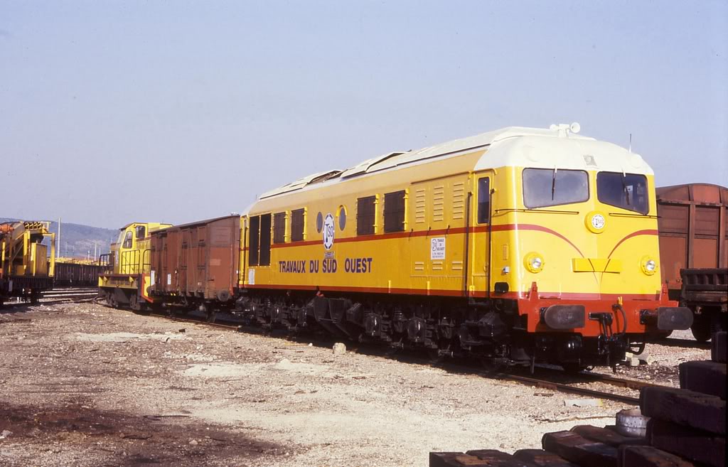 - ancien logo TSO (T en forme de rail inversé) et ancien marquage latéral (TRAVAUX DU SUD-OUEST) en bleu