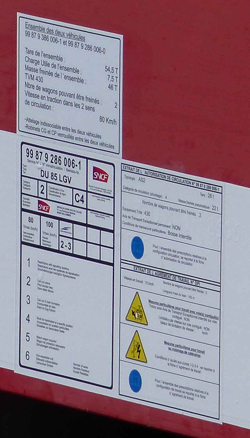 99 87 9 286 006-1 DU 85 LGV / 99 87 9 386 006-0 WPV 85 LGV