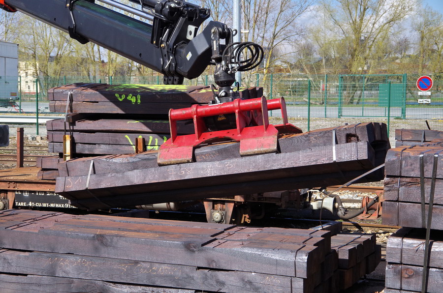 pour le transfert des traverses en bois neuves sur les deux remorques de la Draisine