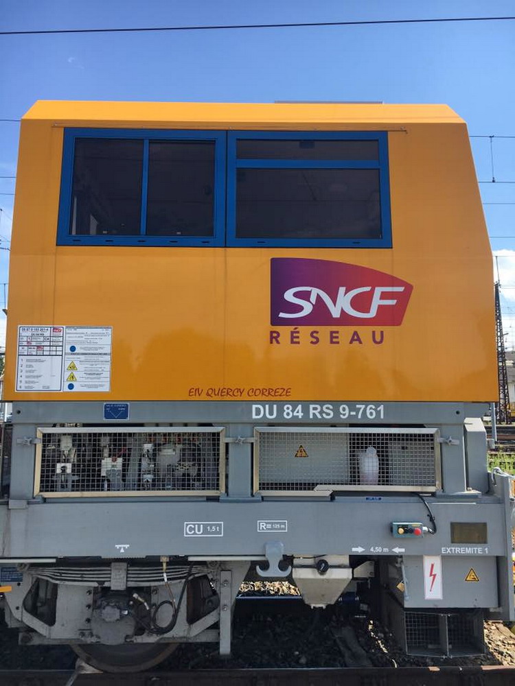 La Draisine DU 84 RS - 99 87 9 185 261-4 - LM 9.761 SNCF RESEAU avec un système Géoradar sur le devant