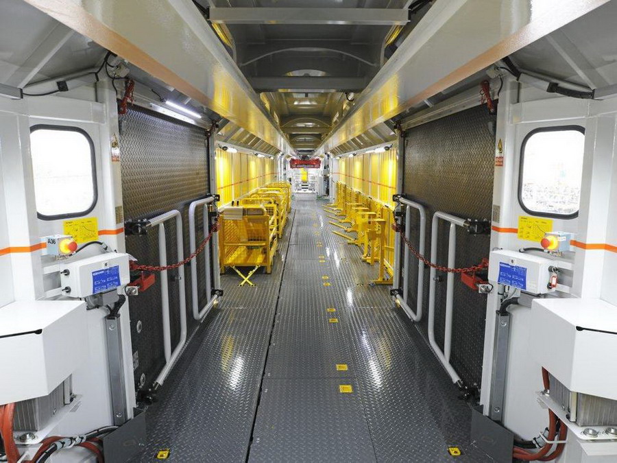 La manutention est facilitée grâce au pont roulant intégré au train. Il peut parcourir toute la longueur du train afin d’aller de la zone