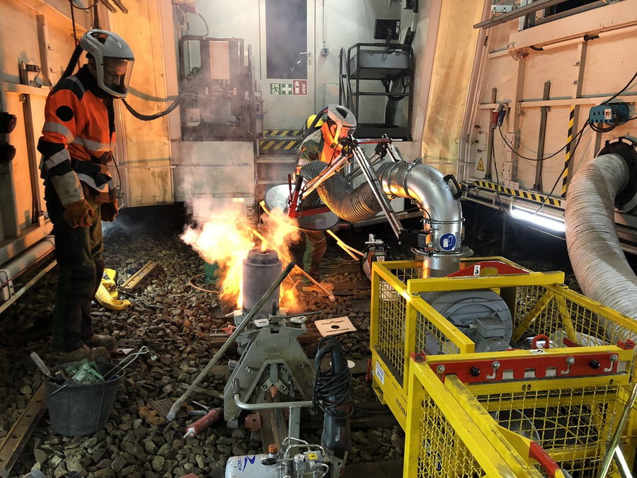 Nouveau test du Train Robel pour nos soudeurs. 1ère soudure de la nuit.