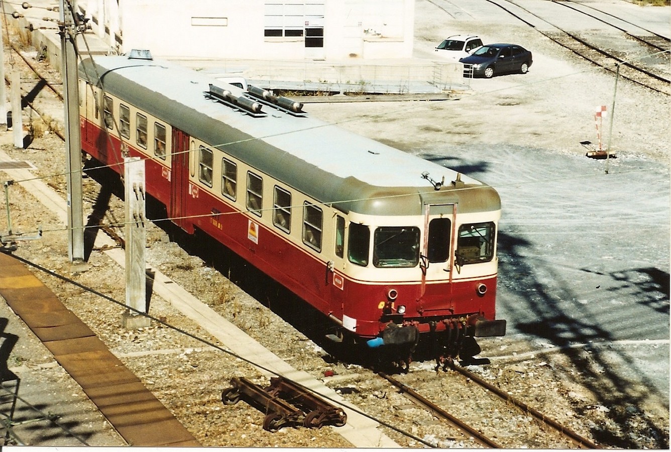 Photo d'un autorail italien garé à Modane pour le transport du personnel BOUYGUES et COLAS RAIL lors des travaux de mise au gabarit du tunnel sous les Alpes.
