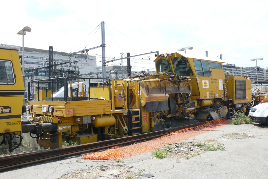 A la sortie de PLY, les engins du RVB des voies du RER D se reposent le jour.