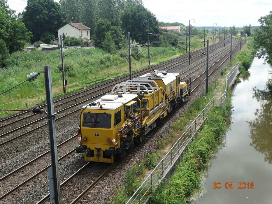 Voici une régaleuse RGT 30 de TSO, elle est vue à Gretz. Le faisceau marchandise de cette gare est temporairement transformé en base de TTX pour le RVB de Tournan à Coulommiers.