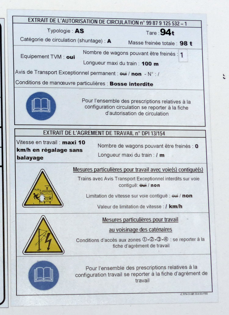 Equipement : TVM 430 - Tare 94 T - Longueur 31,62 m