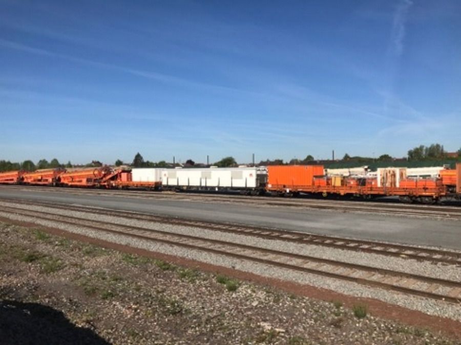 rame de la Dégarnisseuse Colas Rail RM900-HD100 sur la base de travaux LGV Nord de Lille Délivrance mai 2019