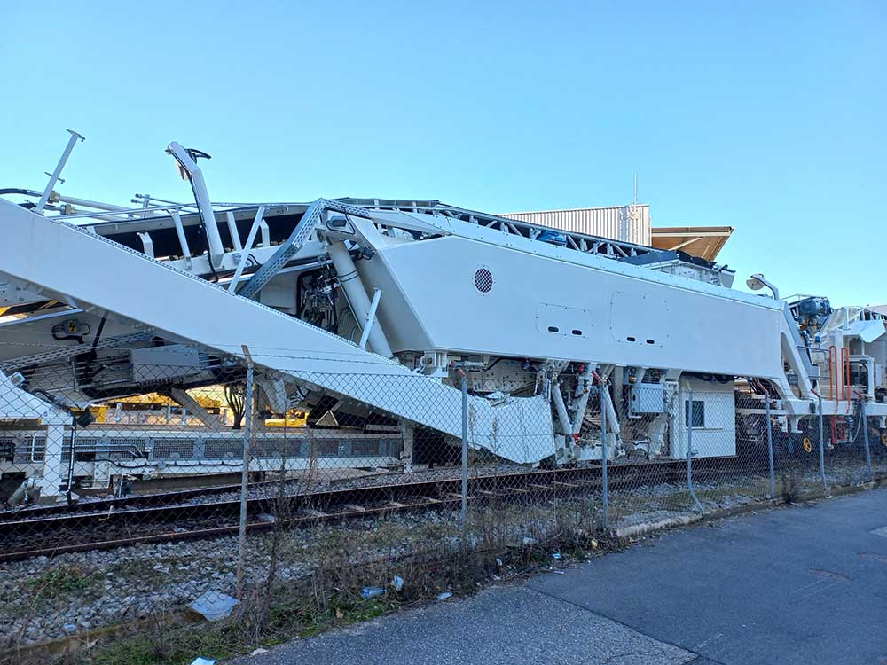 CGF, il y a 2 cabines, l'alimentation, la réserve de carburant et la génératrice électrique se trouvant derrière la chaîne de dégarnissage par rapport au sens de marche. Elle ne possède qu'un seul crible, a priori comme celle d'ETF.