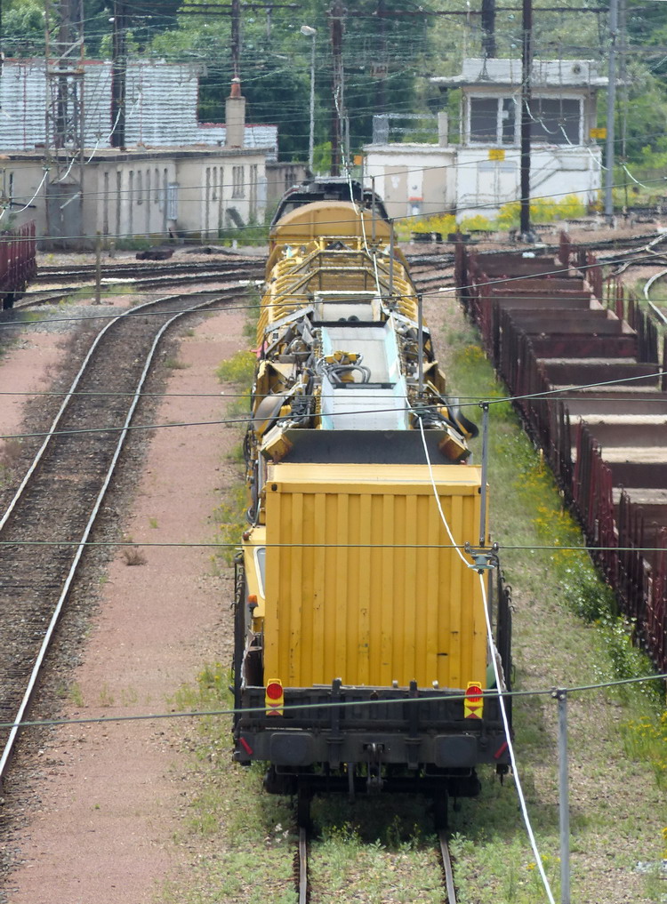 Retour de la dégarnisseuse sur la base de travaux Meccoli/ETF de la gare de Laon le 24 avril 2018