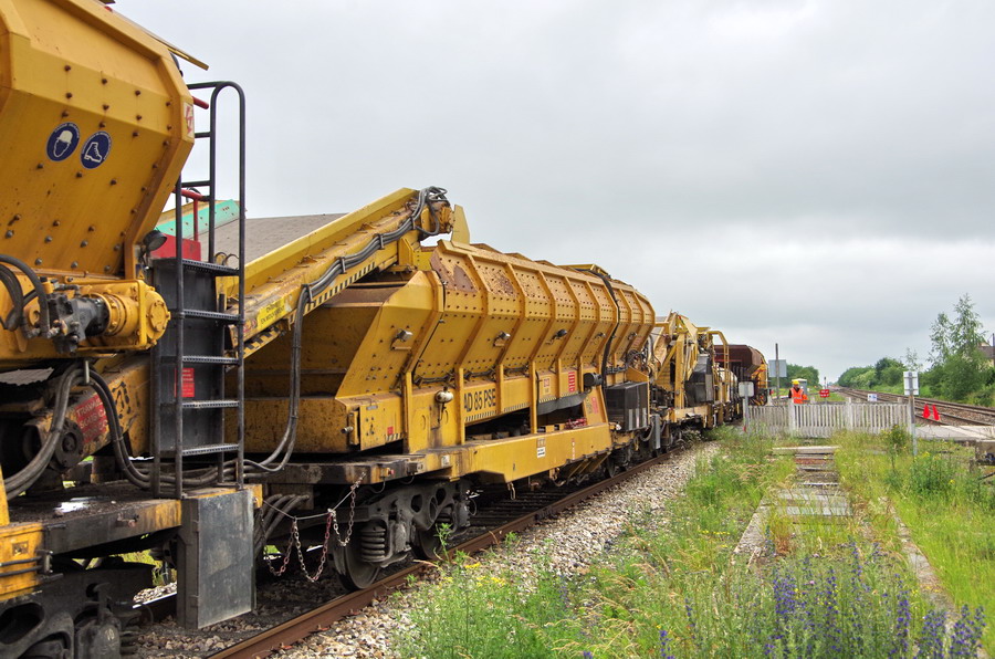 Retour de la rame de la Dégarnisseuse train n°DK2 sur la base de travaux de la gare de Chaulnes le 01 juin 2018