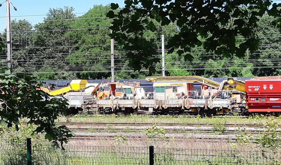 Voici l'élément C75 - 2C de la Dègarnisseuse de Transalp Renouvellement dans le triage de Mulhouse Nord le 20 juin 2018 arrivant de Suisse