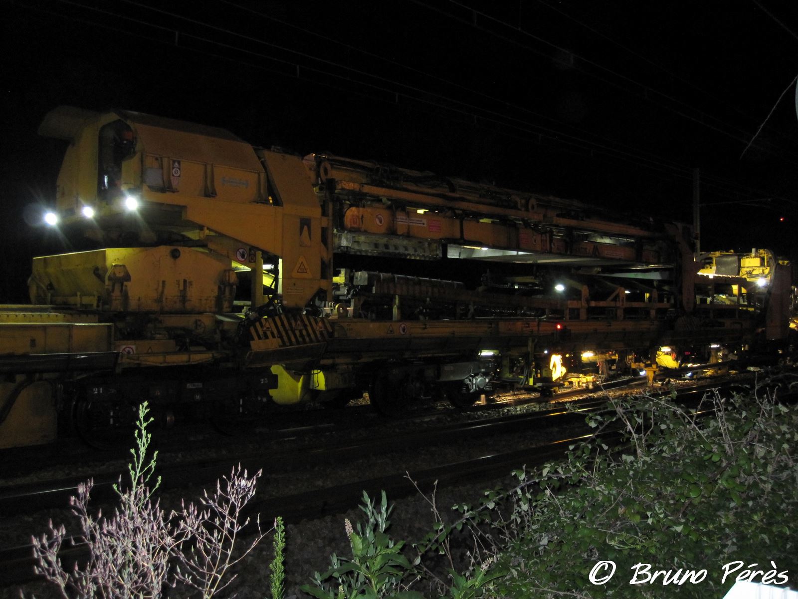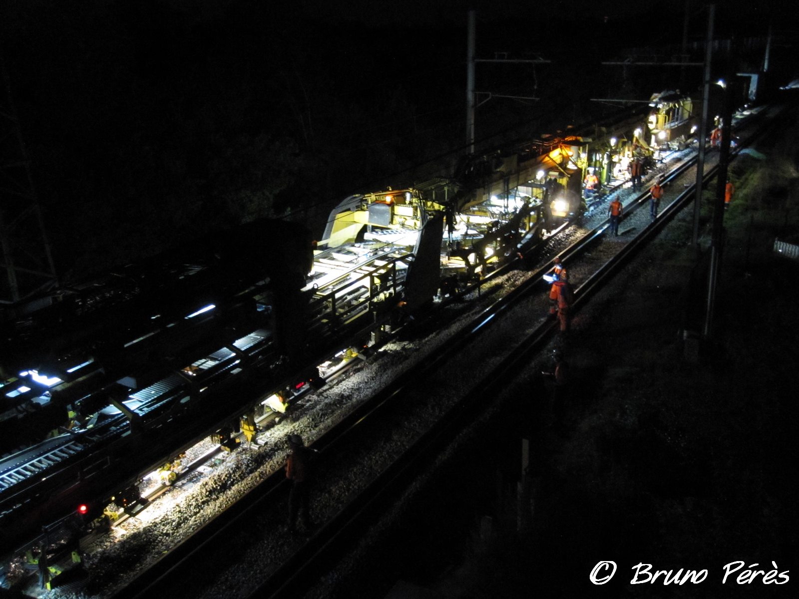Petites photos du P95 prises cette nuit lors d'un remplacement de traverses à Roques (31).