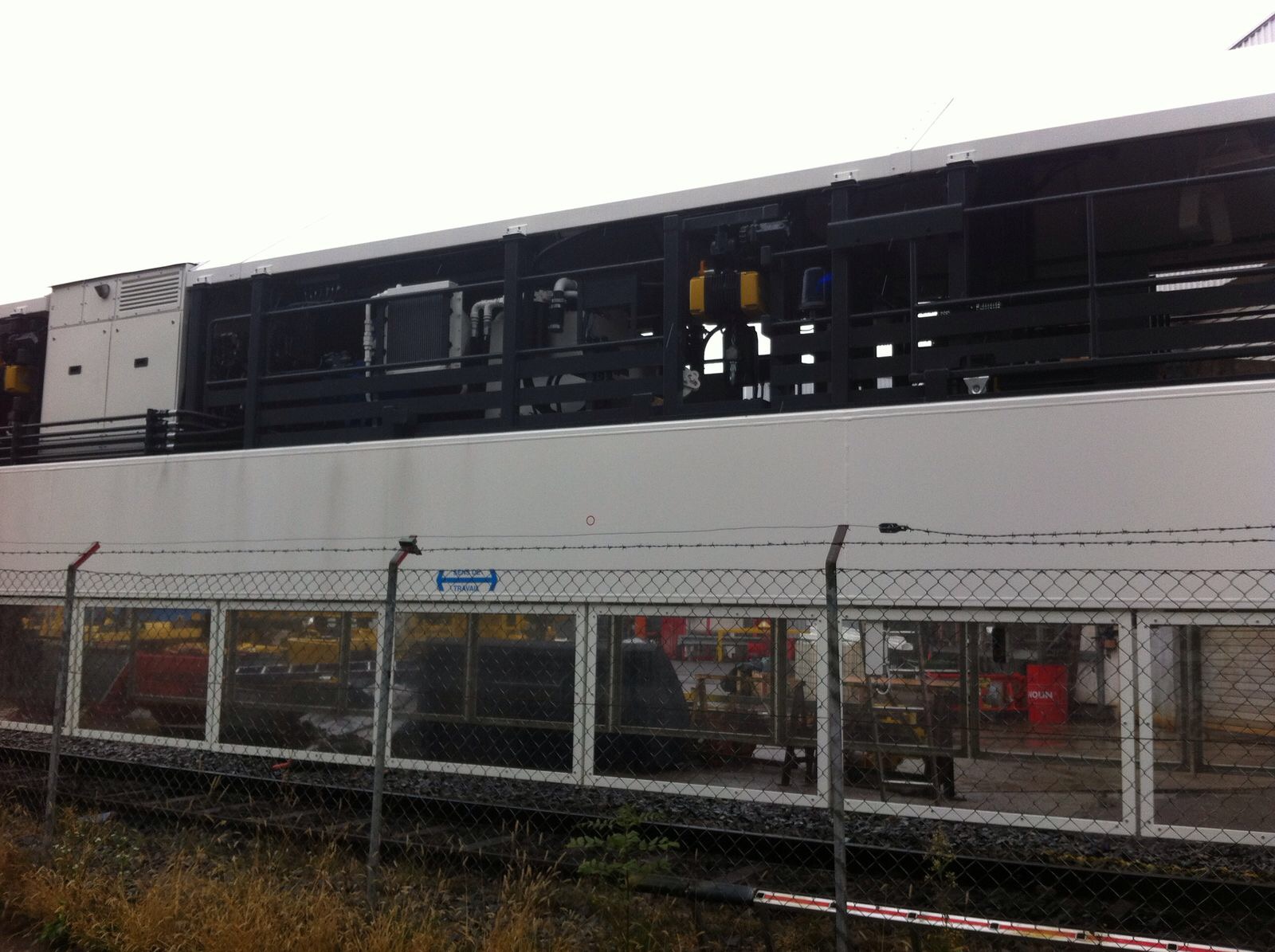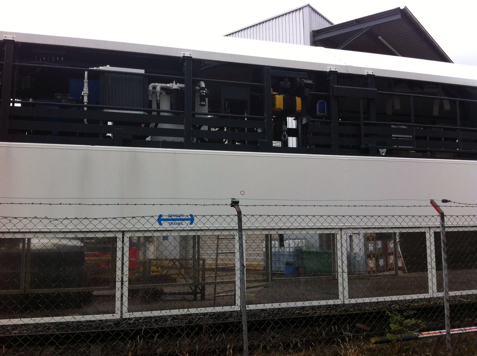 le wagon se trouve sur la nouvelle base arrière de travaux d'ETF pour Zones denses à Brétigny-sur-Orge