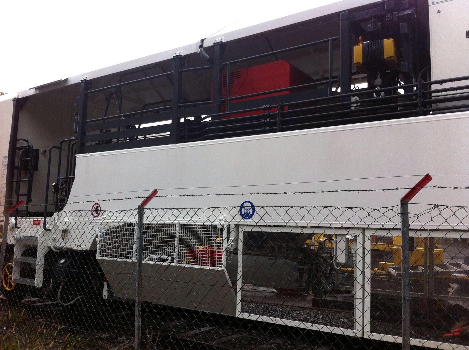 voici le wagon Jicad construit par Matisa, il permet le travail en sécurité du personnel