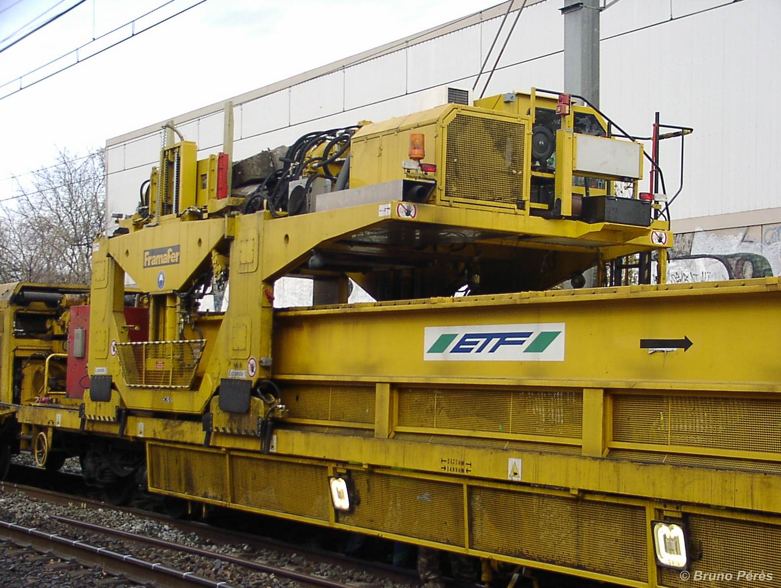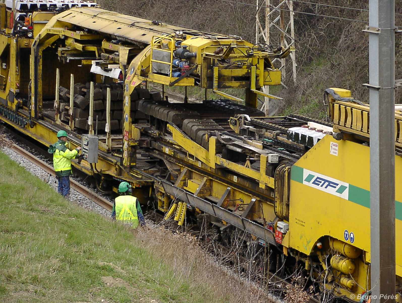 Ce portique d'approvisionnement est chargé de transférer les traverses neuves des wagons vers le SMD, et de faire faire le chemin inverse aux vieilles traverses.