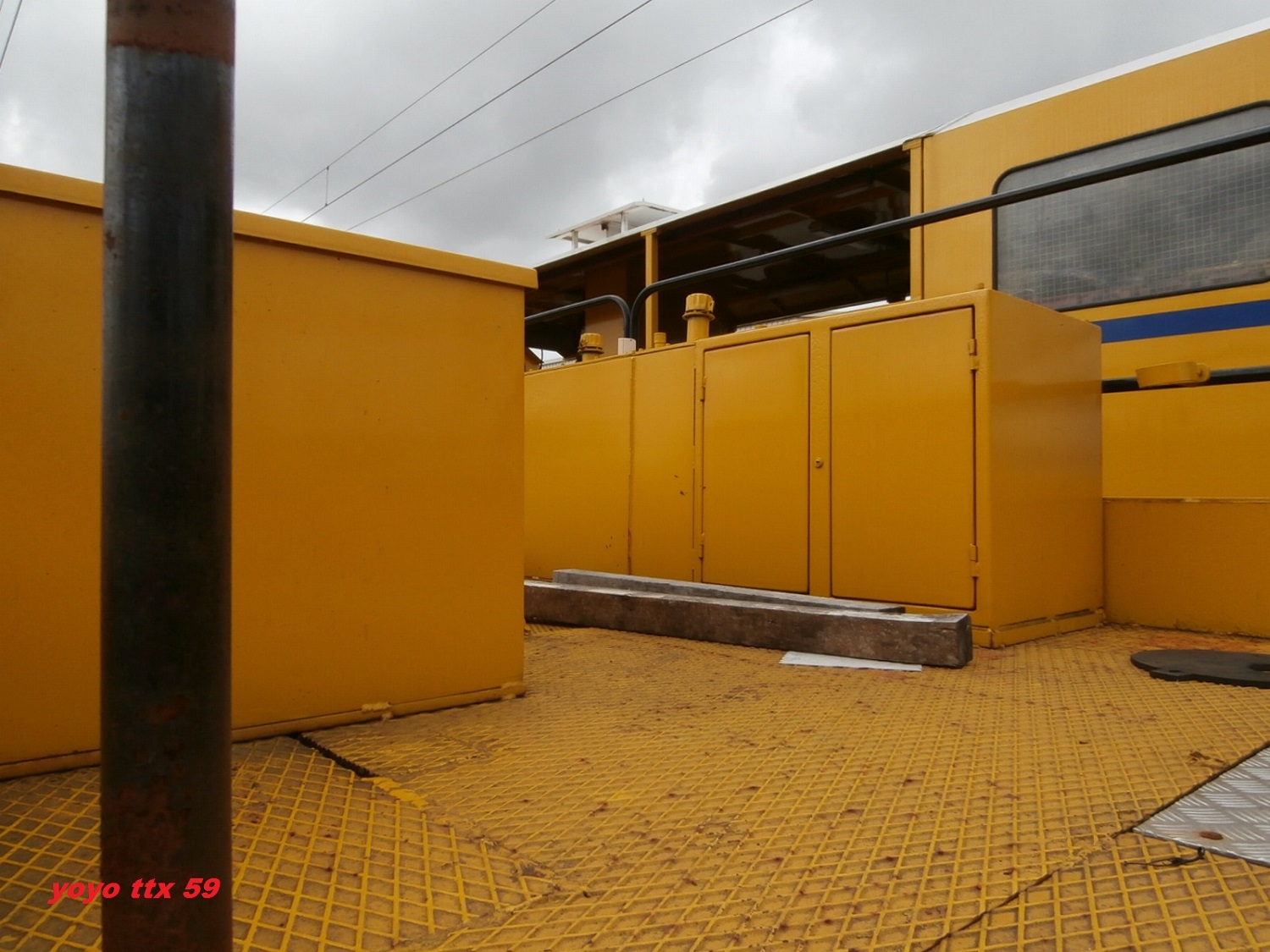 Voici encore une petit vue de détails du dessus du wagon .Toujours a Gravelines le 17/08/2014 sur le chantier de la ligne Dunkerque Calais :Et voila pour le dessus du wagon.