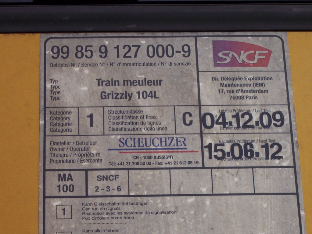 99 85 91 27 000-9 - SCHEUCHZER - GRIZZLY 104L -