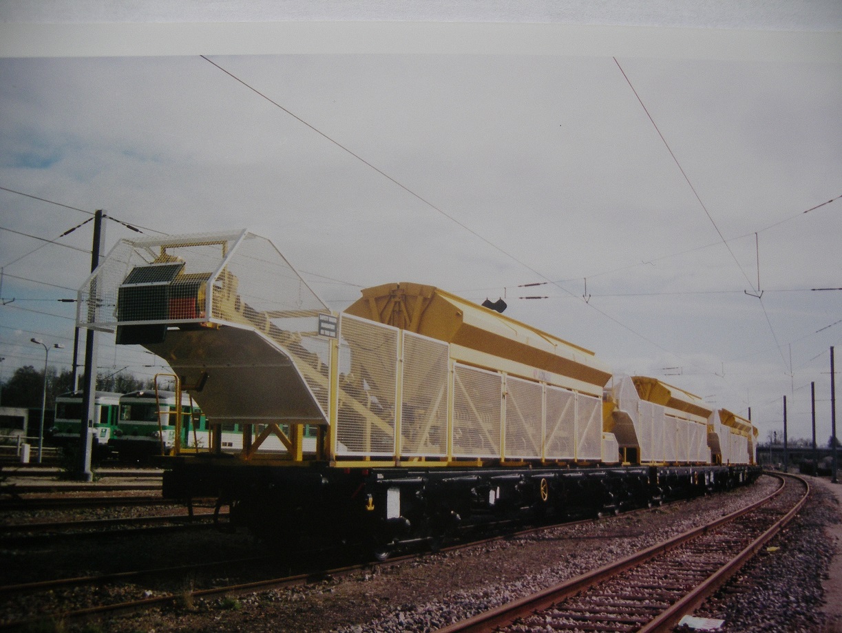 quelques photos argentiques de wagons convoyeurs, construits par la société ADLER, basée dans l'Oise, montés en gare de BEAUVAIS, destinés aux travaux du tunnel du Saint Gothard. Je crois qu'ils entraient dans la composition de la rame de bétonnage.