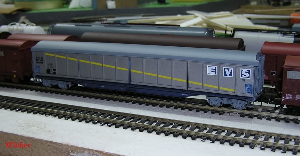 wagon couvert Habis 82 6 : 99 87 9 383 793-6 (wagon pour le transport du carburant et du gaz)wagon plat à essieux K50 : 99 87 9 383 686-6