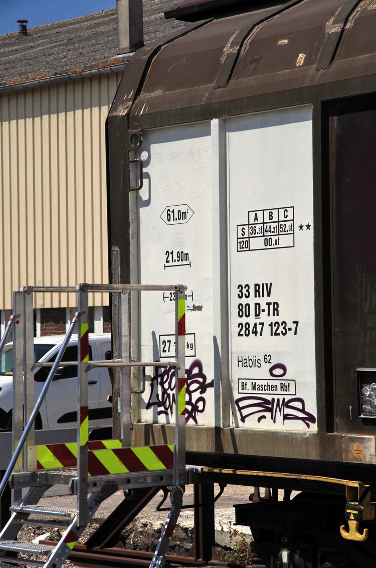 Voici le wagon couvert atelier - 33 80 2847 123-7 Habiis 62 RIV D-TR de Transalp Renouvellement
