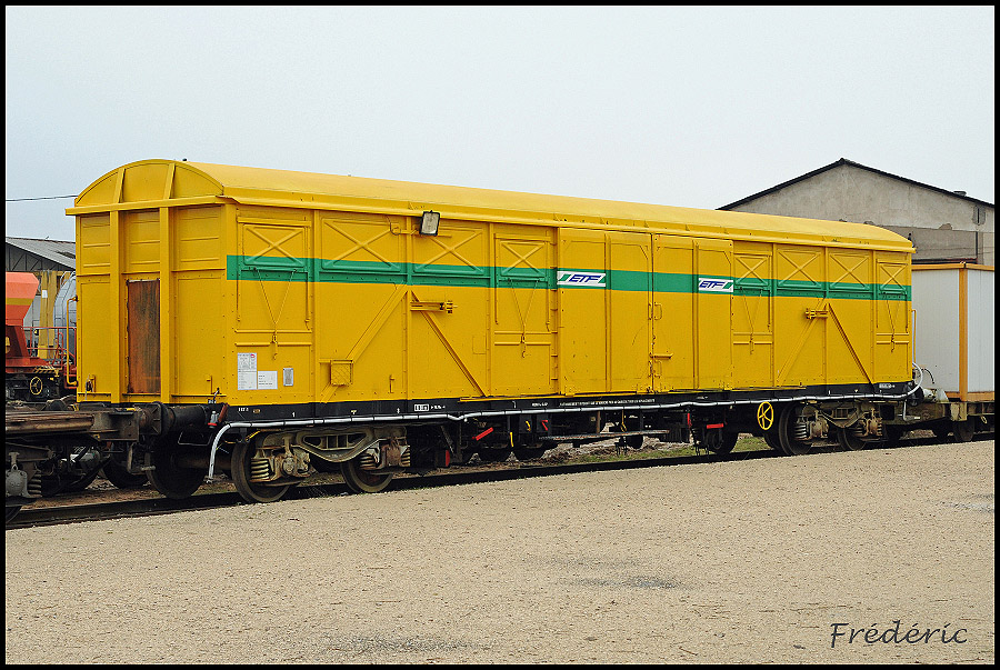 Voici une wagon couvert servant sans doute d'atelier à la dégarnisseuse C1 D21 d'ETF.