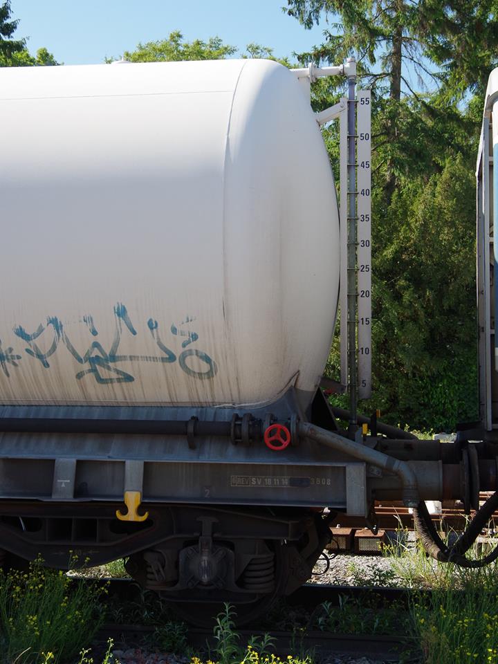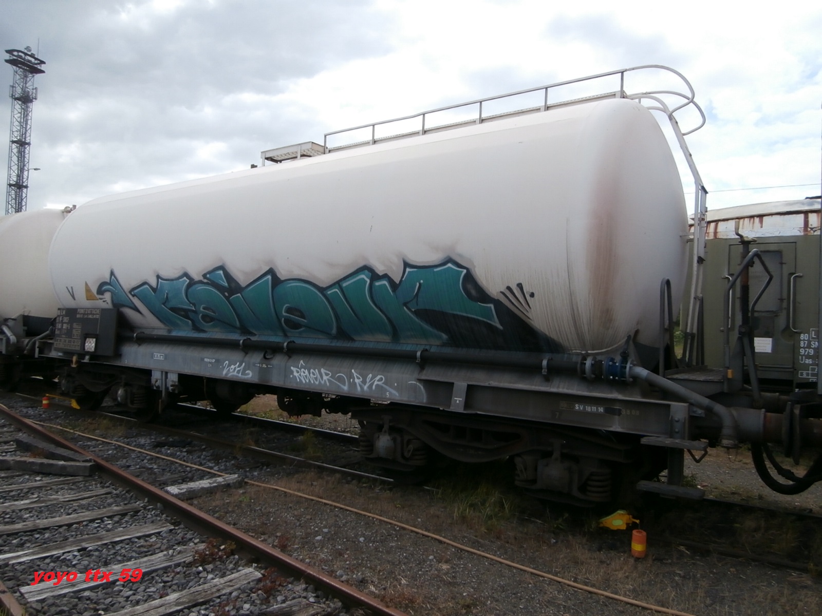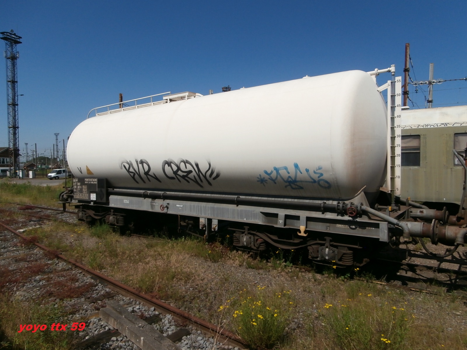 Voici le wagon citerne à boggies 80 87 978 1 009-6 Uas Z 21 6 - SNCF-LM gare d'attache Brive la Gaillarde sur la rame du train désherbeur TDGR 80 87 979 8 810-8 - SNCF-BD