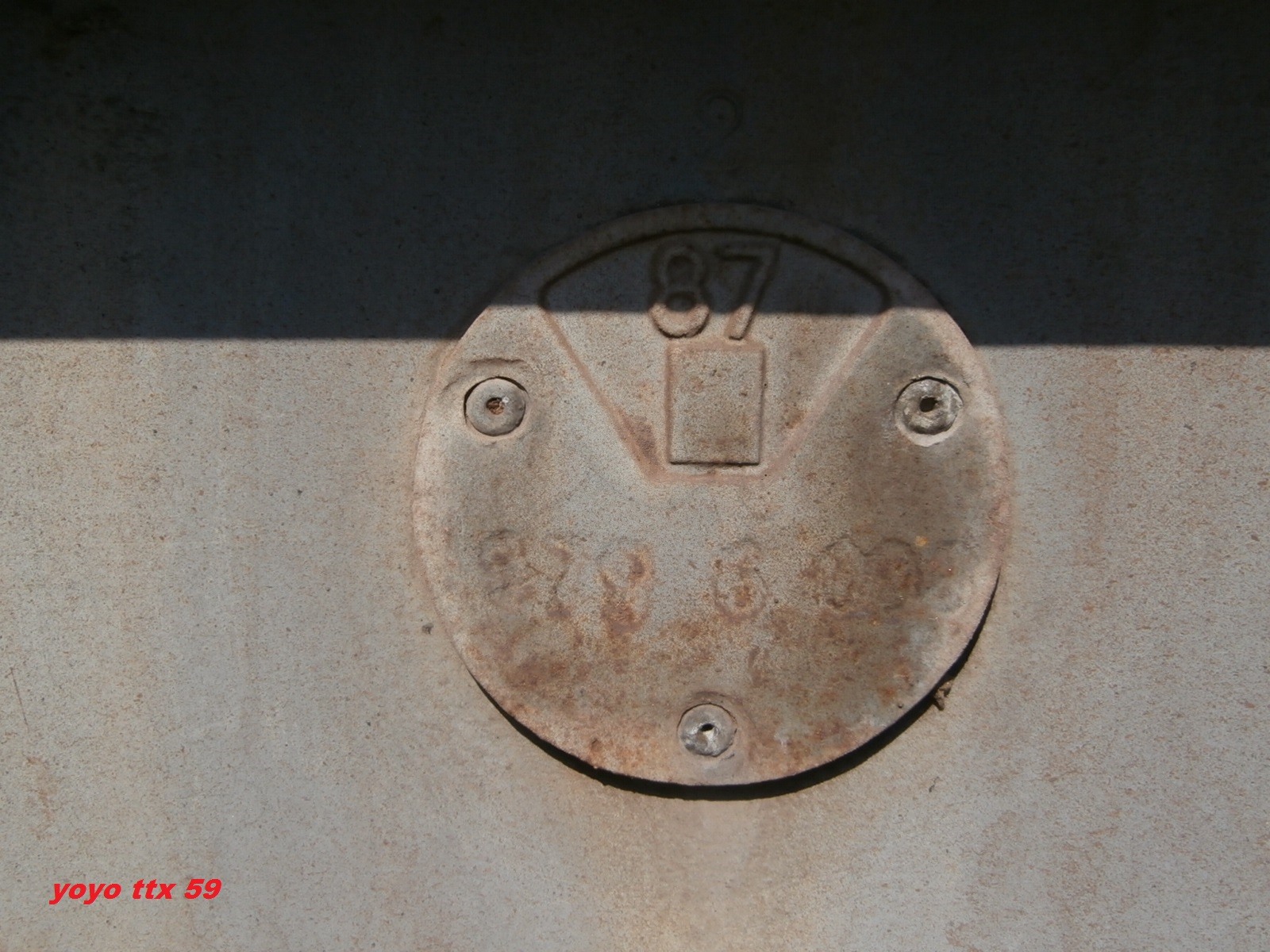 Voici le wagon citerne 80 87 979 9 804-0 Uas W64 6 SNCF-RO - Point d'attache Caen dans une rame laveur d'isolateur Ã