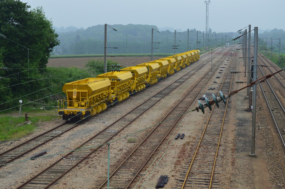 Tiens, c'est fort probablement la rame louée Colas dont nous avions parlé un jour... Je me souviens d'une salade d'immatriculations (Allemagne/Montenegro) et que, finalement, on avait identifié MFI comme propriétaire et OnRail comme responsable entretien...