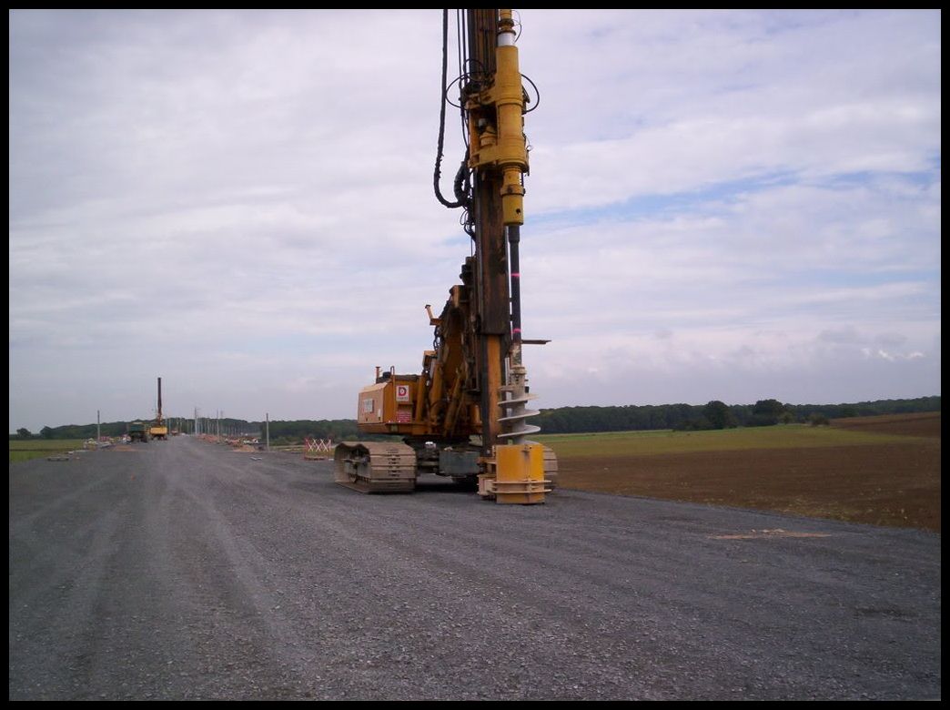 Voici quelques photos de pelles un peu spéciales servant aux forages et la pose des poteaux caténaires sur la LGV Est.