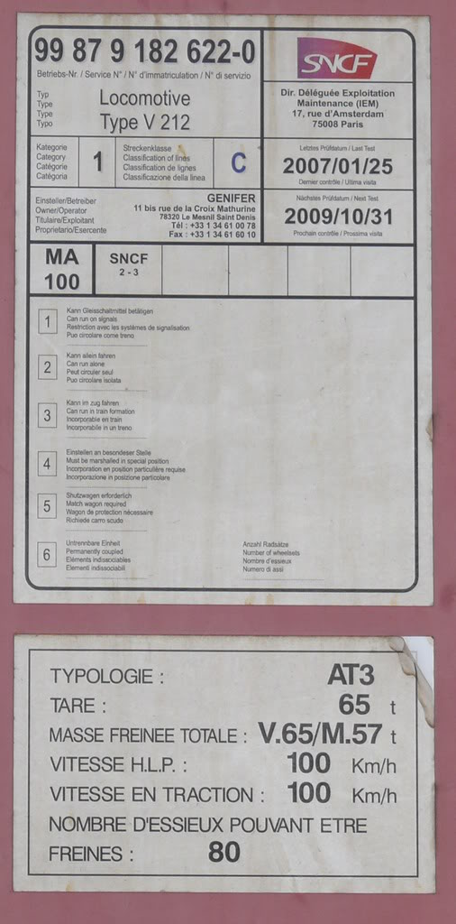 Toujours dans mes archives du chantier de Nice Breil, voila qui j'ai croisé, visiblement ce loco a obtenu une prolongation d'agrément, puisque la date de dernier CT est identique aux photos de Patrick77, par contre la date de prochain CT avait évolué.