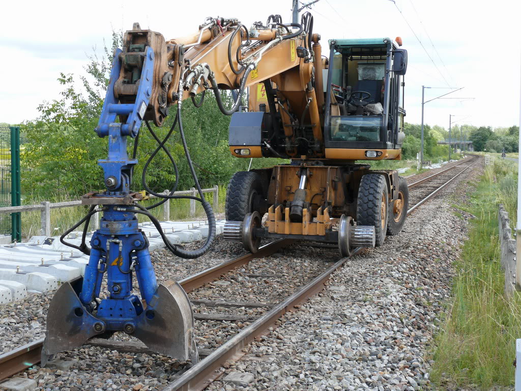 Voici un aperçu en image des pelles rail-route que j'ai vu aujourd'hui sur le RVB de la ligne 21 entre Tournan et Coulommiers. Ce RVB n'a rien de spectaculaire et tout est fait " a l'ancienne" Beaucoup de pelles donc sur ce chantier.
