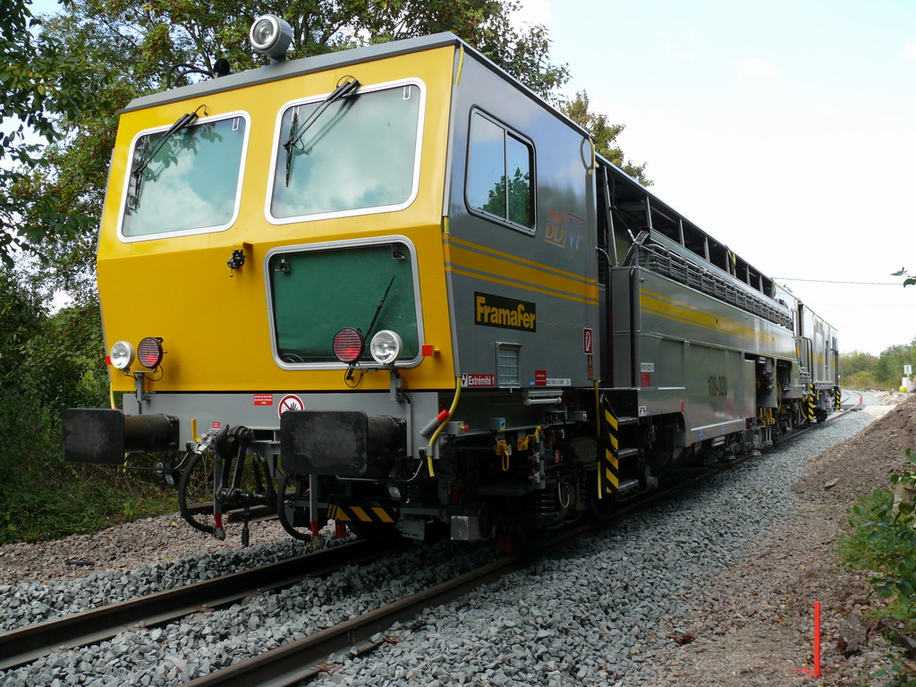 Décidément, le RVB de la ligne Montereau- Flamboin aura été riche en nouveautés pour moi. Après le G1206 de DVF , voici une bourreuse toute toute neuve pour BDVF. La couleur est originale est permet de repéré ces machines parmi les autres canaris!!