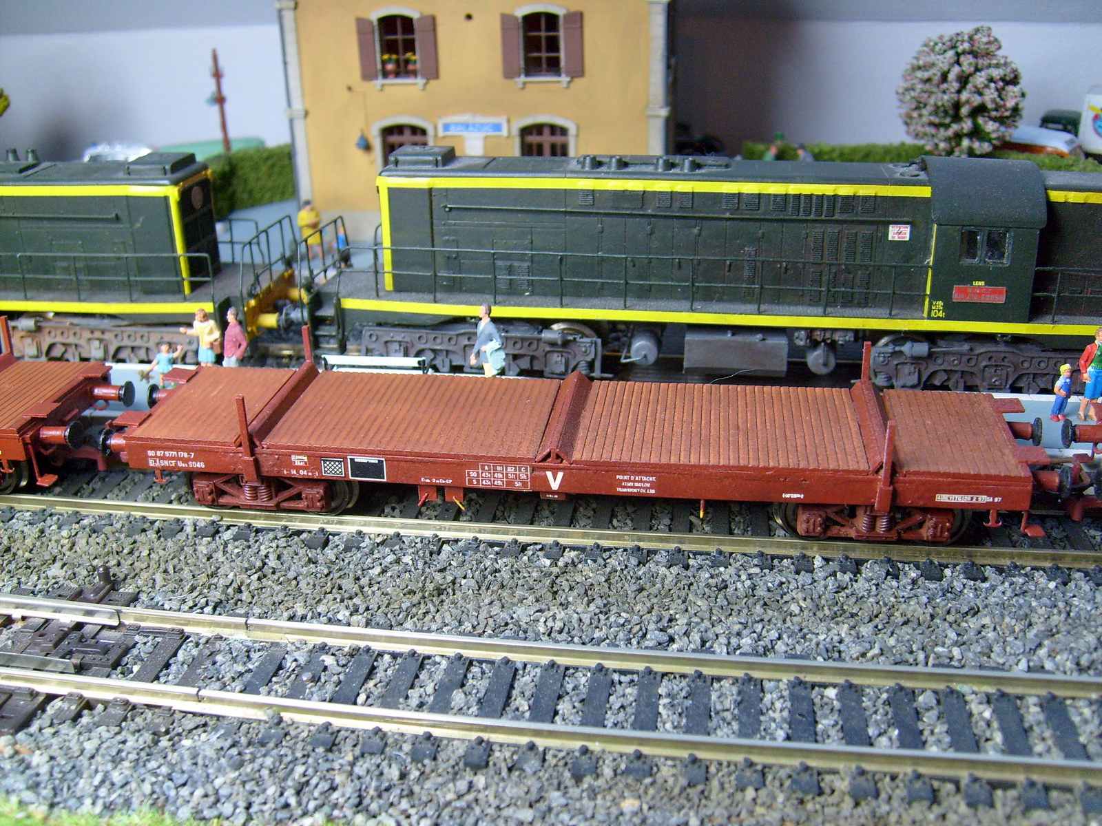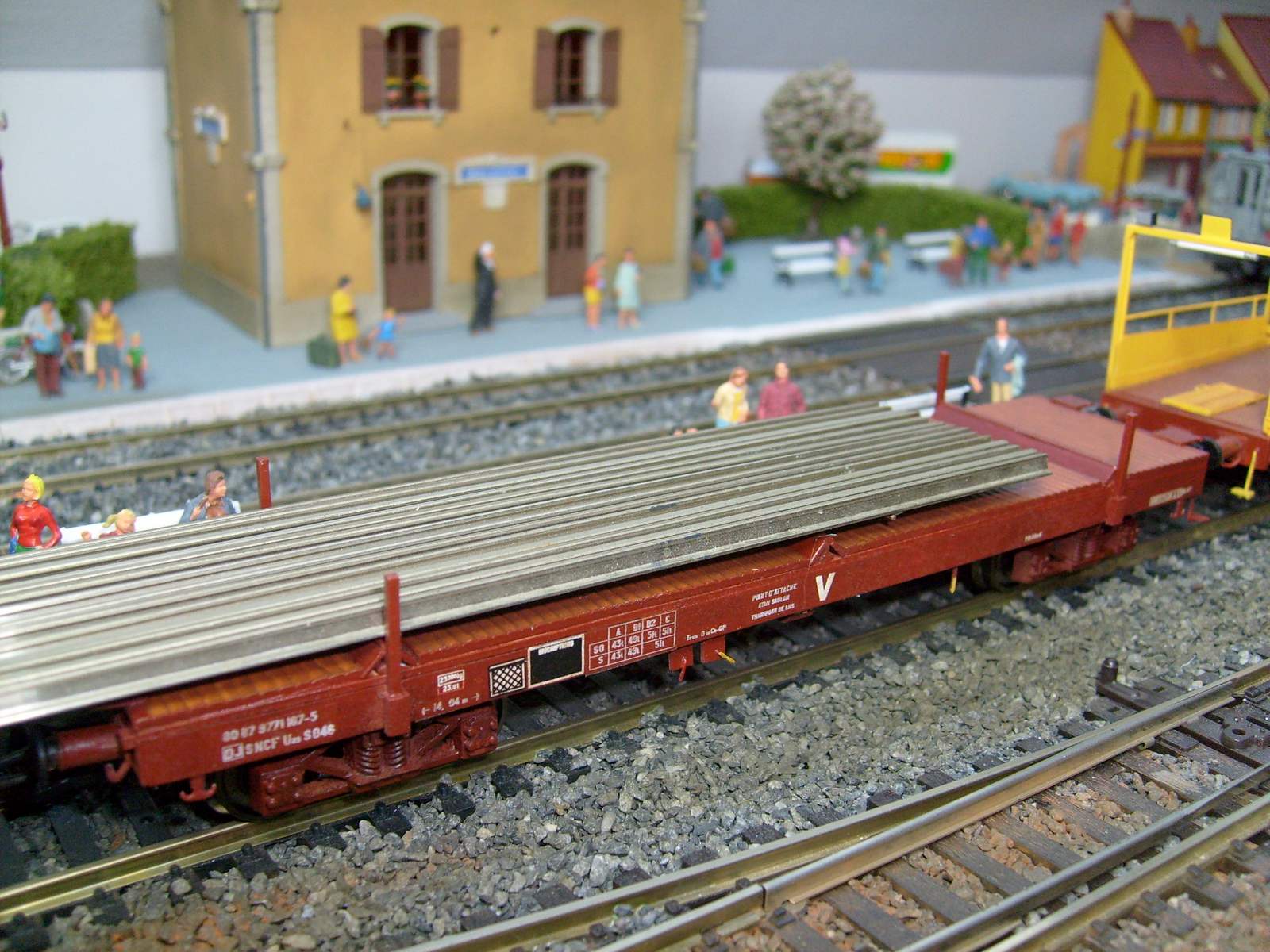 c'est la solution que j'ai choisi pour mes deux futures rames de transport LRS... Une chargée mais qui restera stationnée sur une voie de garage... Et une rame qui roulera mais vide, je pense comme Bruno que faire circuler une telle rame chargée est quasi impossible, à moins peut être d'avoir un réseau au tracé rectiligne et des aiguilles en proto 87... Ou alors des courbes de "X" mètres de rayon!!!!!!!!