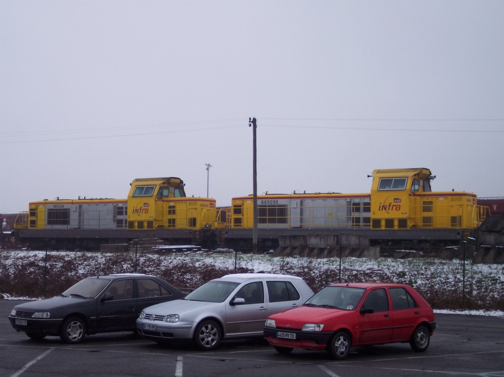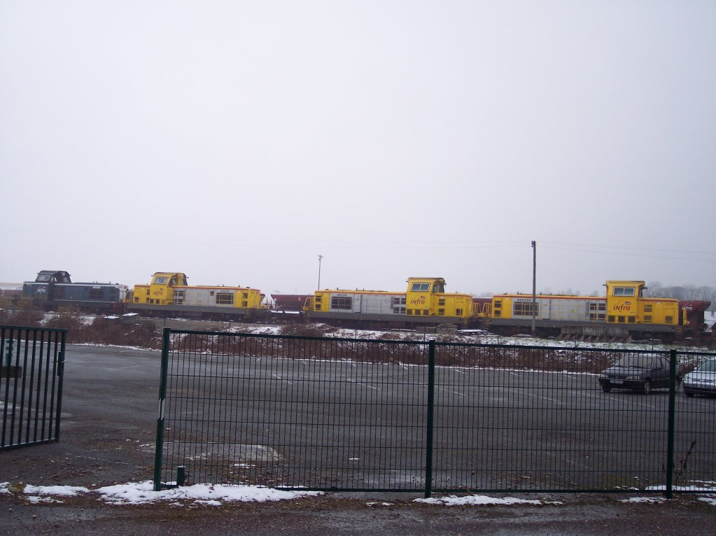 on peut voir les 4 dernières locomotives arrivé de la Base LGV Rhin Rhône avec une rame de trémie à ballast vide, ensuite il les découple pour pouvoir en accroché 2 devant le train de machine