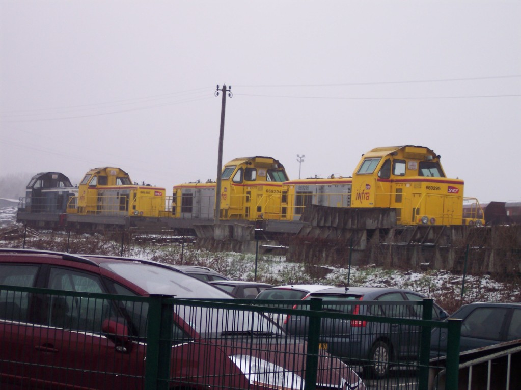 on peut voir les 4 dernières locomotives arrivé de la Base LGV Rhin Rhône avec une rame de trémie à ballast vide, ensuite il les découple pour pouvoir en accroché 2 devant le train de machine
