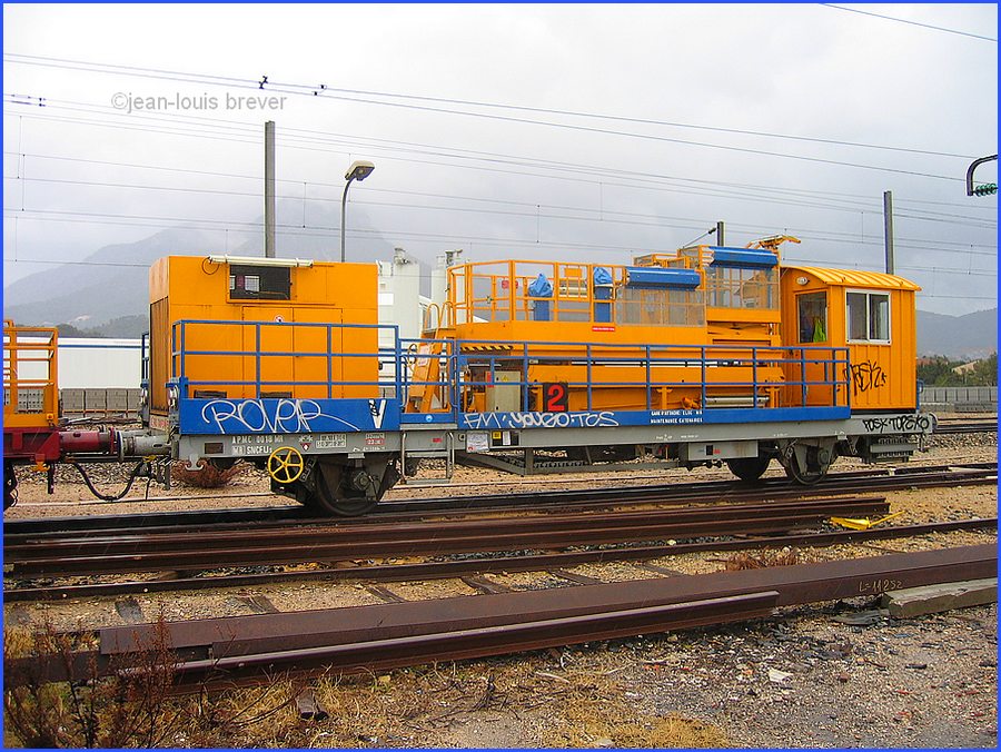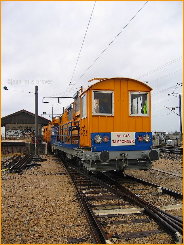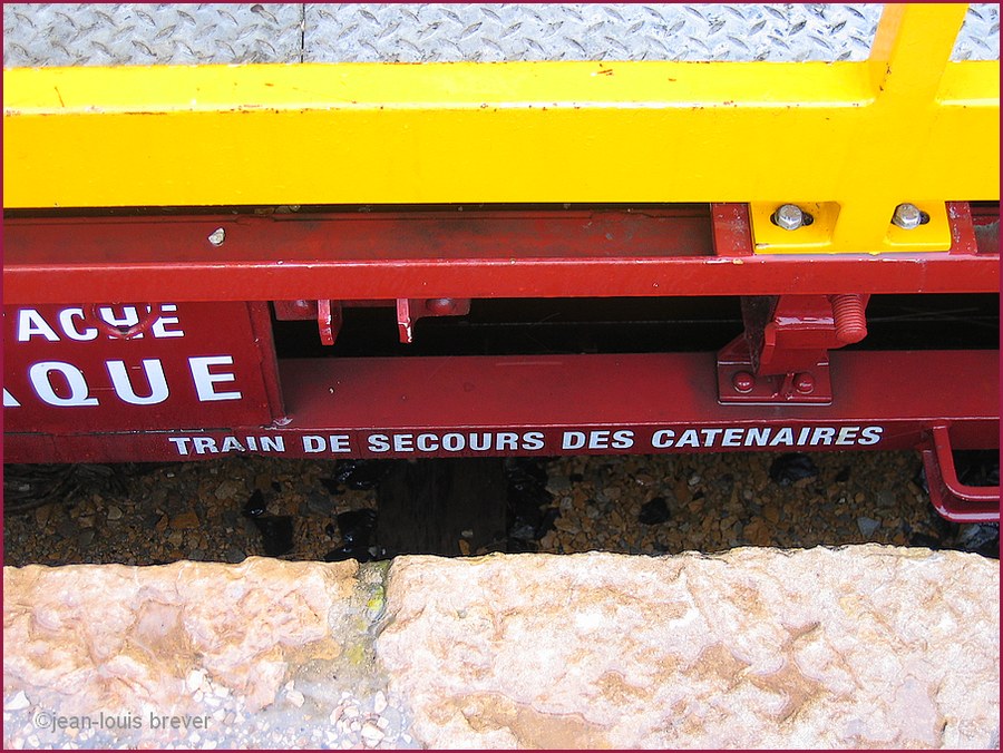 sous une pluie diluvienne, ce jour de septembre 2006, était stationné sur les voies de débord de la gare de La Pauline-Hyères, ce train de maintenance des caténaires; ce qui ne m'a pas empêché dans faire des clichés que je vous présente dans leur totalité.
