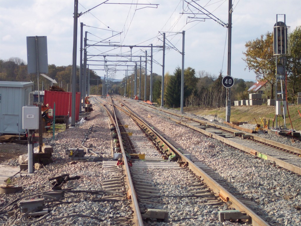 Petit-Croix (90), 31/10/2010, vue sur les aiguillages de raccordement, au fond, direction Belfort.