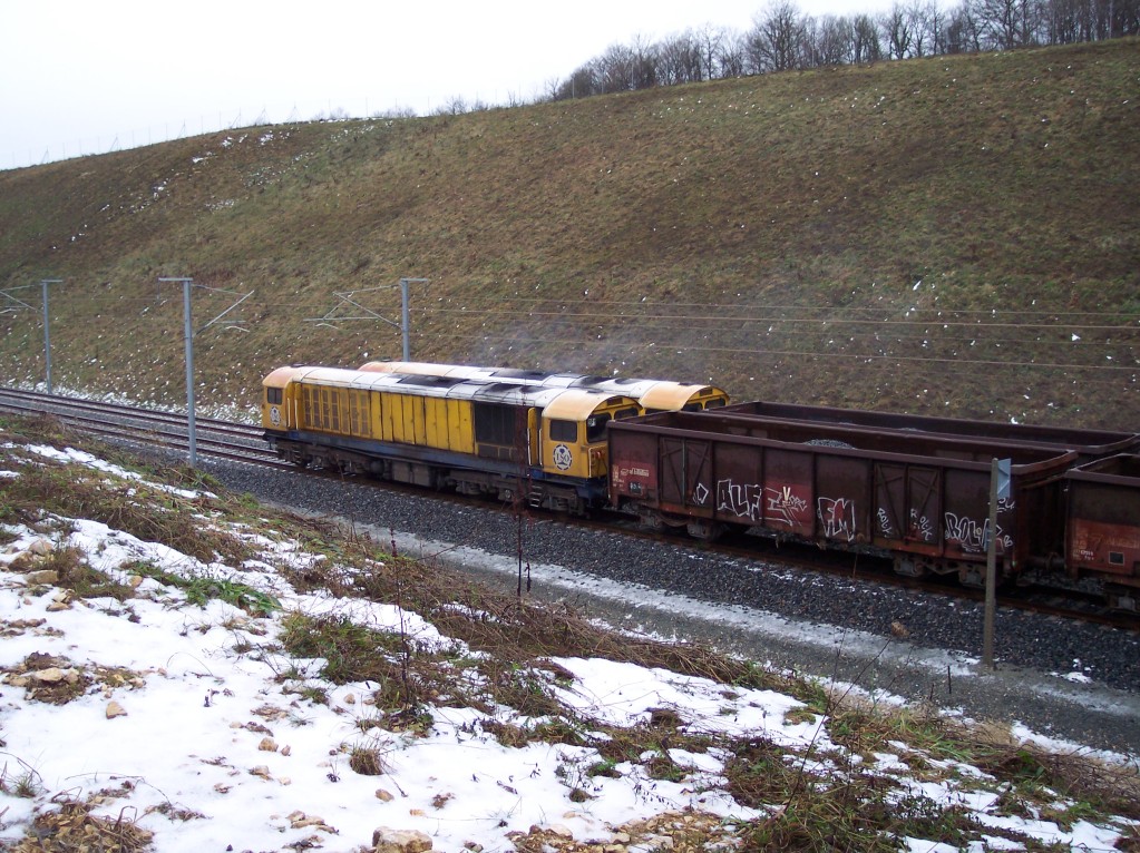 Sur ce post, mon message du 06/11/2010 (en page 33) montre le train de tombereaux sur le viaduc de l'Ognon à Thiéffrans, à l'ouest de Villersexel, sur la LGV-RR, et l'hypothèse du test de charge sur l'ouvrage a été évoquée.