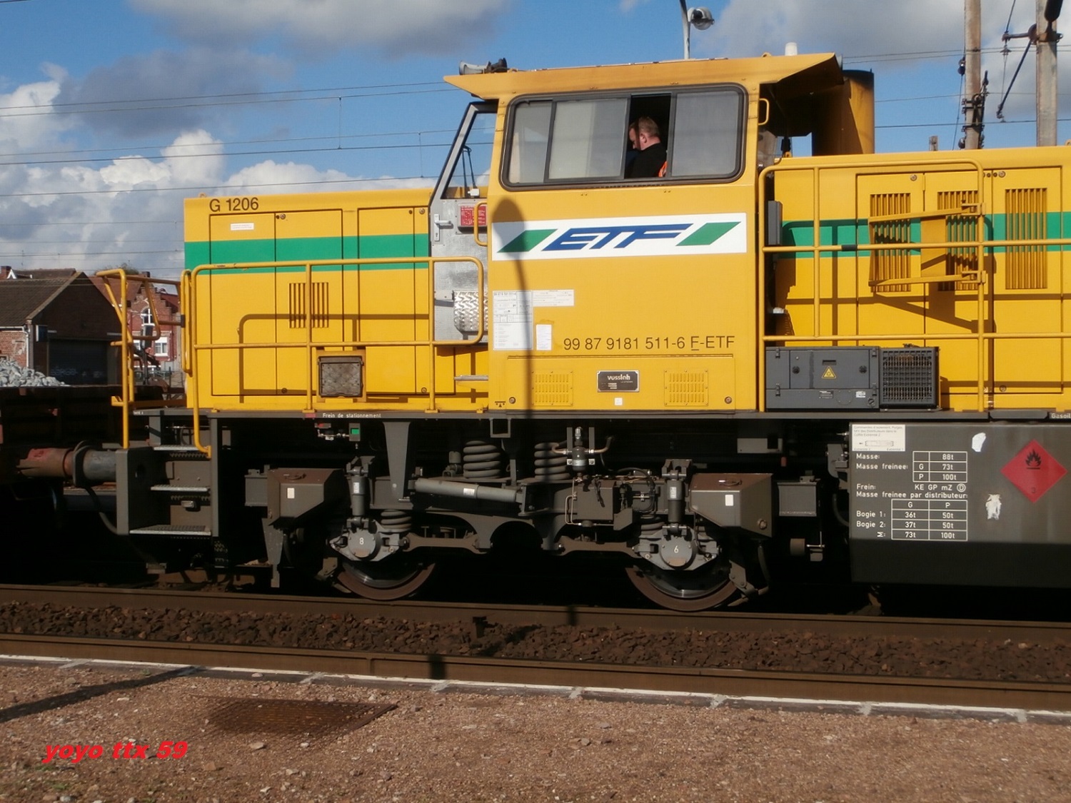 Voici une G 1206 ETF prise sur le triage d'Hourcade. Par contre comme la photo est floue je n'arrive pas à voir le numéro. Quand je compare aux autres photos du site, il y a quelques différences. Portes drapeaux gris, numéro UIC sur la cabine ...