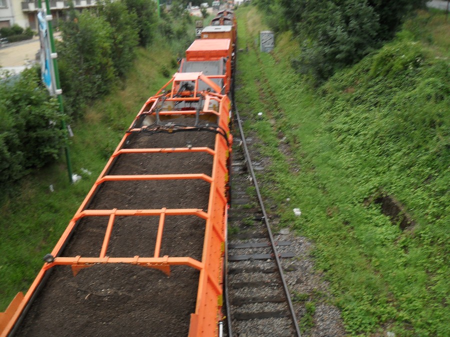 Les tombereaux une fois tous déséquipé vont être stocké sur voie 6, c'est donc pour celà que les abord de cette voie ont été nettoyé, pour permettre à une pelle de les vider puis de les charger sur camion. . .
