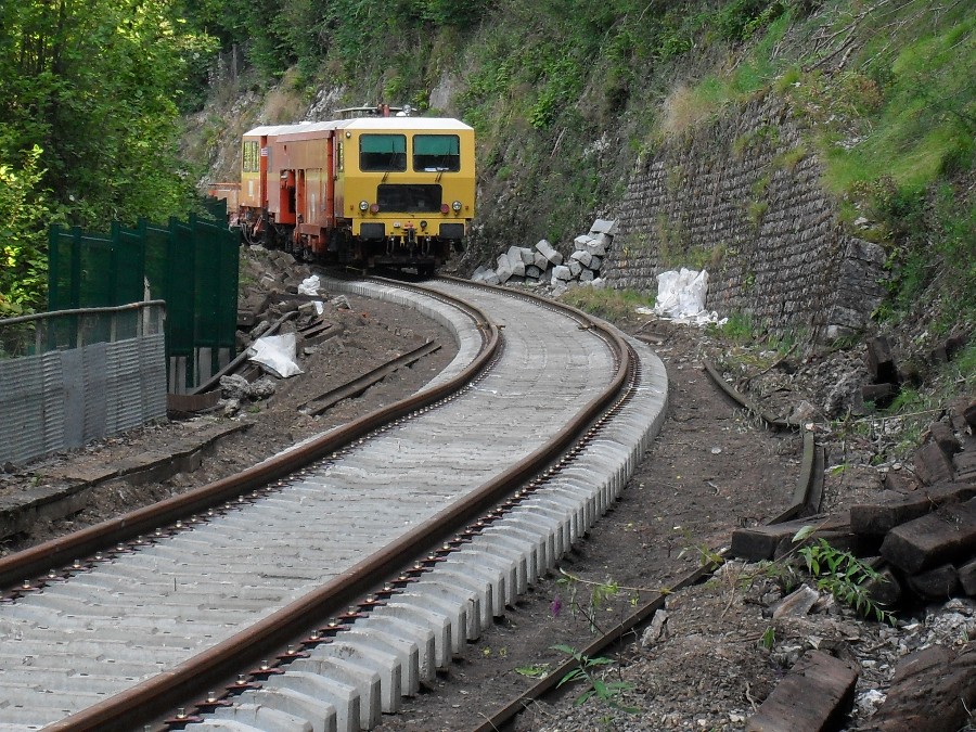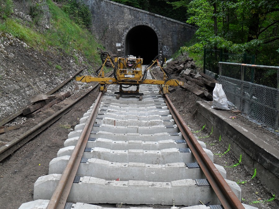Retour dans la côte de Morre, le ballastage à donc commencé, et le chantier en est déjà au niveau du dernier tunnel, celui de la porte taillée, le plus dure à donc été fait.