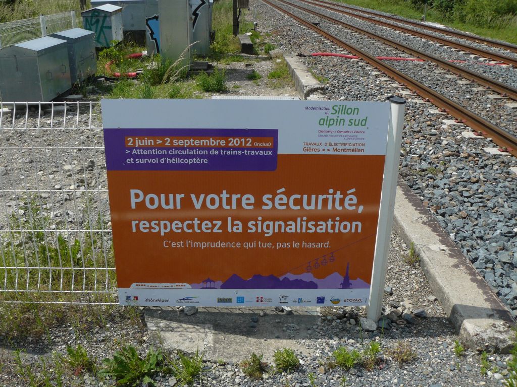 J'ai remarqué qu'il n'y avait pas de photos sur le chantier de RVB de la ligne Gières-Montmélian aussi appelé Sillon Alpin Sud. Je vous propose donc quelques photos réalisées depuis le début du chantier fin mai 2011.