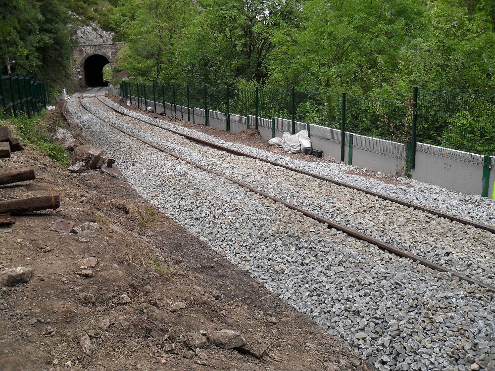 Petit tour habituel vers l'endroit "repère" au niveau du tunnel de la porte taillée qui à bien avancé, avec un ballastage généreux. Reste dons à terminer la pose des éclisses et leur perçage, du bourrage, reballastage et régalage et quelques petites finitions ça et là, et le chantier sera terminé, voir s'ils bossent la semaine prochaine comme cette semaine ils auront 1 semaine d'avance, bien sur il y a encore le nettoyage à réaliser, évacuation des vieux rail et traverses.