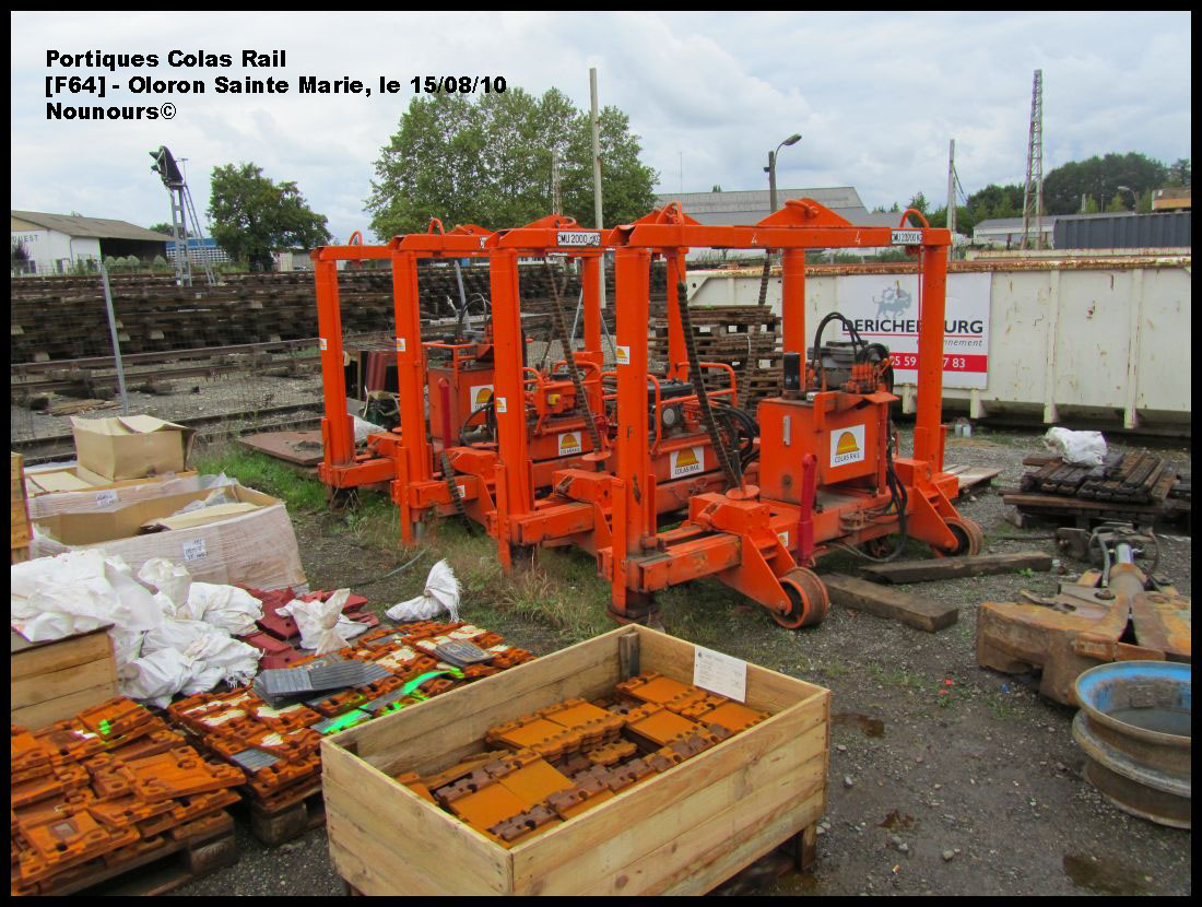 Ce message de Guillaume m'a rappelé que j'avais quelques photos de portiques dont je n'arrive ni à trouver le type, ni a trouver l'usage. Étant donné qu'ils ressemblent étrangement aux Fassetta CRV 801 de Guillaume, je pense qu'il s'agit du même type, mais de fabrication antérieure. Bien entendu, j'ai aussi ma petite idée sur leur utilisation et je pense qu'il s'agit de portiques servant au ripage de la voie.