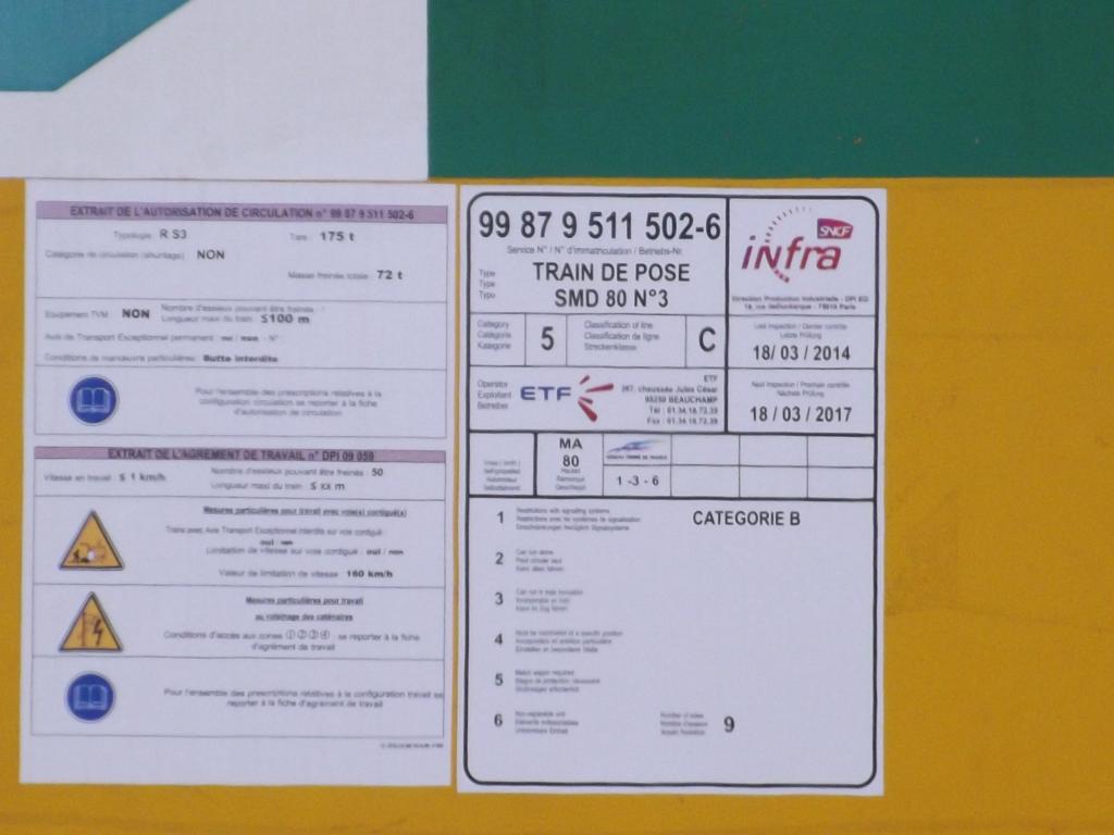 Voici quelques infos sur le SMD 80 d'ETF. Ce train de coupe a été utilisé jusqu'à l'arrivée du P95 "Oryx" en 1999. Garé bon état, il a bénéficié d'une rénovation totale suite à la destruction accidentelle du P95 en 2006. Il a repris du service en 2007 avec un nom de baptême adapté : "Renovatio". Depuis 2009, un nouveau train de coupe P95 est arrivé dans l'entreprise et a pris la place du SMD 80 dans la suite rapide. Ce dernier continue de travailler sur des RVB de moins grande importance (Capdenac-Tessonnières par exemple, ici et là).