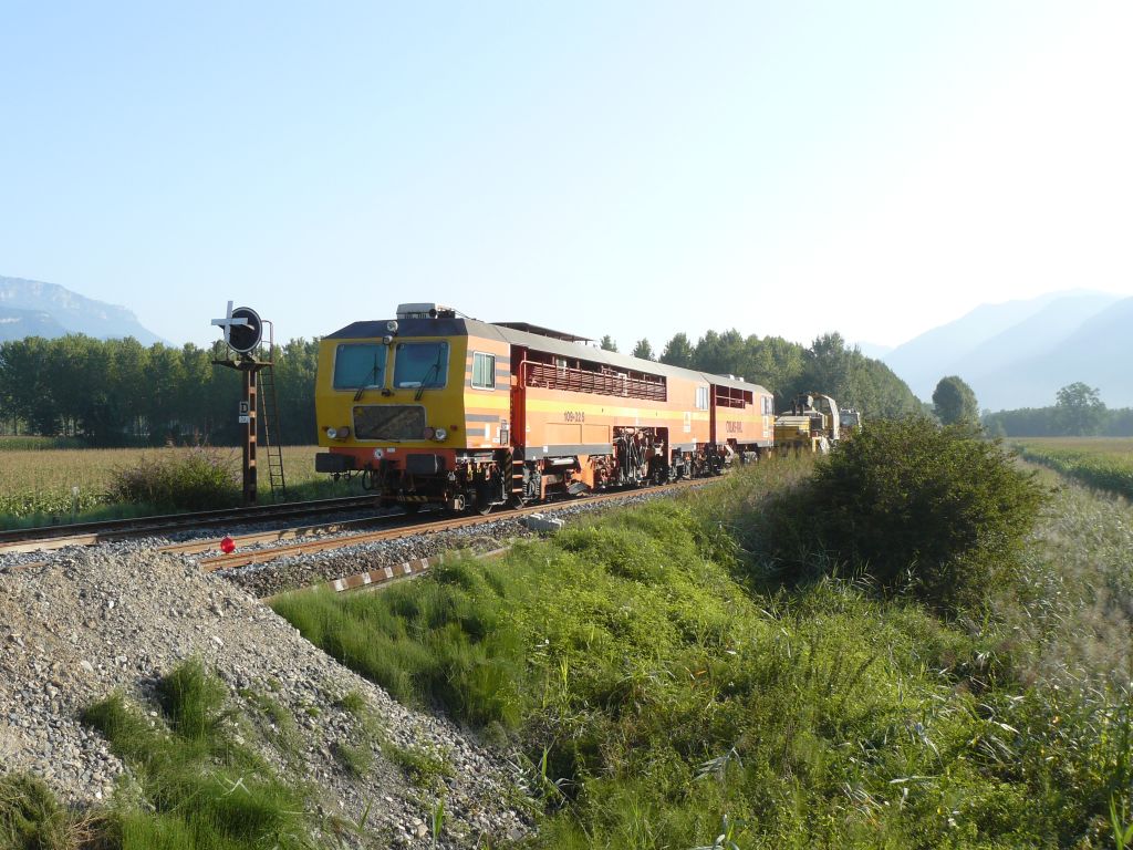 02/08/2011 Un engin de la société Colas Rail stationne près de Tencin.