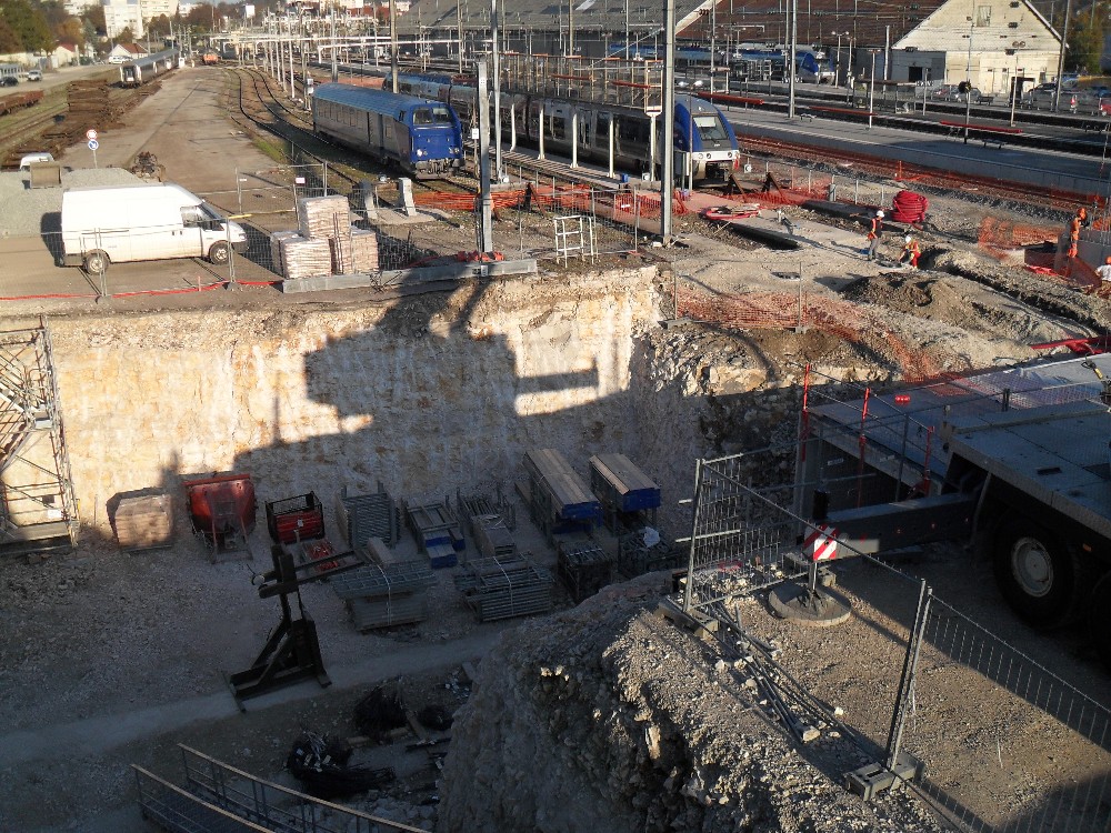 Etant de passage sur Besançon mardi 22 novembre 2011, je me suis arrêté à la Viotte est tel ne fût pas ma surprise que de voir un énorme trou coupant plusieurs voies en deux ! ! !